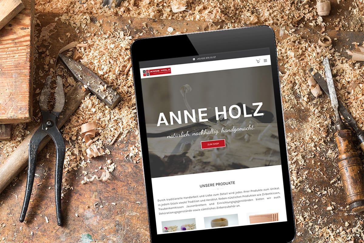 Anne Holz besitzt einen Online Shop für Holzaccesoires, Zirbenkissen und diverse andere Produkte aus Holz. Im Betrieb selbst wird traditionelle Handarbeit mit modernster Technik kombiniert. Die Unternehmerin aus Weissbriach legt großen Wert darauf, dass die verwendeten Werkstoffe aus der Region kommen und mit Liebe zum Detail gefertigt werden. Das Ziel der Unternehmerin war es, ihren Kunden einen einfachen und bequemen Online-Shop bieten zu können.