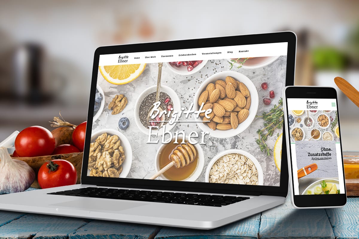 Für Brigitte Ebner und Ihre Familie ist gesunde Ernährung immer schon ein wichtiger Punkt im täglichen Leben. Das oberste Credo im Hause Ebner ist Regionalität und Frische. Ihre Tochter ist leidenschaftliche Sportlerin und muss sich auch dementsprechend ernähren. Das war der Grund dafür, dass die Unternehmerin den Thermomix für sich entdeckt hat. Die Begeisterung für das Küchengerät stieg schnell ins Unermessliche und für Sie war klar, dass Sie andere Menschen auch davon begeistern will. Grund genug, um den Direktvertrieb für Thermomix zu starten. Damit der Direktvertrieb richtig ins Laufen kommt, wollte die leidenschaftliche Köchin und Unternehmerin eine übersichtliche und ansprechende Webseite, auf der die Kunden die wichtigsten Informationen finden.
