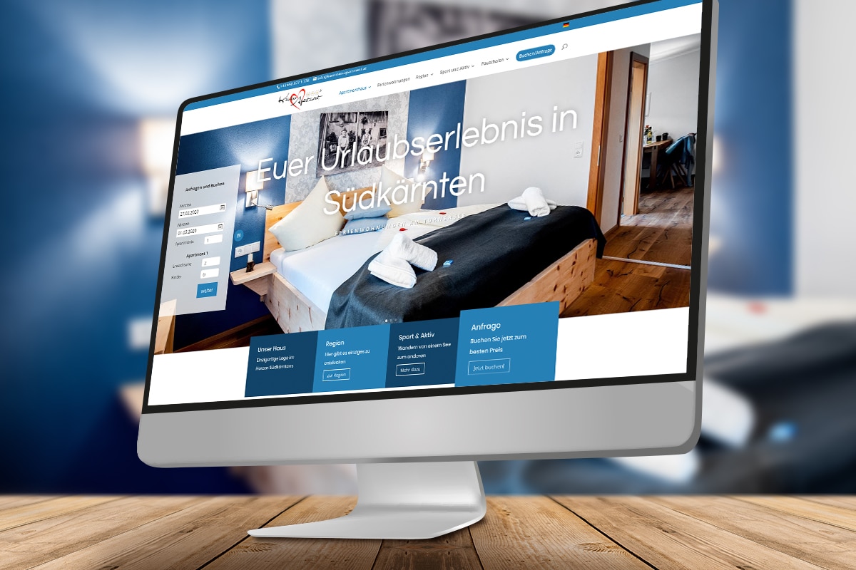Entspannungsurlaub in Südkärnten mit einem Hauch von Action, bei Kärnten Apartment. Hier finden Familien, Freunde und Paare die perfekte Kombination aus Erholung und Aktivitäten. In den Ferienwohnungen am Turnersee finden sich zahlreiche Optionen, um deinen Traumurlaub zu gestalten. Du entscheidest, ob du die Ruhe rund um den See genießen willst, oder doch lieber deinen Körper sportlich herausforderst. Die Zimmer sind stilvoll und modern mit dem gewissen Wohlfühlfaktor eingerichtet. Genau diese Anforderungen, hatte DI Silke Egger, die Gastgeberin, auch an die neue Webseite.