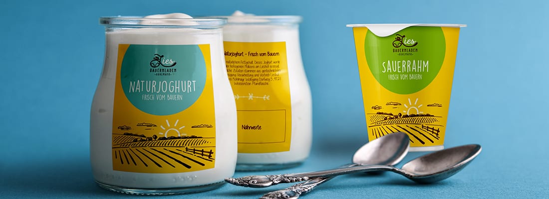Begonnen haben wir damit, für seinen Bauernladen in Weissenstein ein Logo zu kreieren. Das neue Logo soll authentisch sein, und den Inhaber Wolfgang Kohlmayer und seine Leidenschaft widerspiegeln. Als Grundlage hat der Name Lies gedient, welcher der Vulgoname des Bauernhofs ist. Der größte Teil seiner Produkte sind Milchprodukte, deshalb soll das L eine gezeichnete Kuh von vorne darstellen. Jeden Tag, wenn Wolfgang Kohlmayer in den frühen Morgenstunden seinen Hof betritt, geht die Sonne in seinem Herzen auf. Daraus entstand auch die Idee mit dem Sonnenaufgang. Alles zusammen ergibt ein harmonisches, natürlich wirkendes Logo. Ein gscheiter Bauernladen benötigt natürlich auch ordentliche Visitenkarten. Das Design der Visitenkarten haben wir an das Logo angepasst. Die Farbenkombination gelb und braun soll die Verbundenheit zur Natur widerspiegeln. Mit den Etiketten haben wir den Produkten von Wolfgang Kohlmayr ein neues Outfit verpasst. Um ein einheitliches Bild zu schaffen, haben wir uns auch hier am Logo und an den Visitenkarten orientiert.