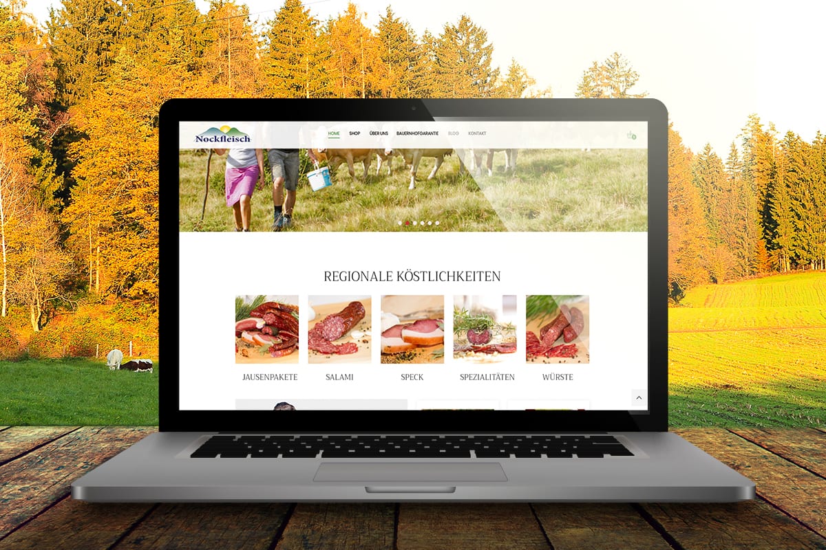 Um das Unternehmen beim Online-Verkauf zu unterstützen, haben wir Nockfleisch ein neues Zuhause gegeben. Über den neuen Webshop kann ab sofort nach Lust und Laune für die Jause eingekauft werden. Der Shop ist übersichtlich und einfach aufgebaut. Die schmackhaften Produktpräsentationen sollen zum Kauf anregen und die Bilder auf der Webseite von der Alm und den Tieren sollen die Regionalität hervorheben. Zusätzlich kannst du auf der neuen Webseite jede Woche die Liste der aktuellen Lieferanten finden.