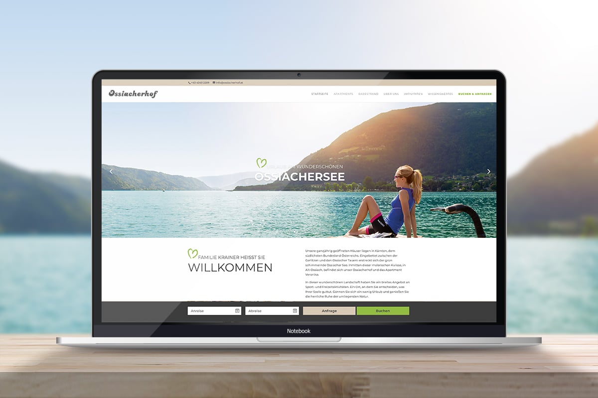 Am Ossiacherhof findet man alles, was einen Traumurlaub ausmacht. Aufwachen mit Blick auf den Ossiacher See und die Gerlitzen, ein eigener Badestrand und eine Auswahl an zahlreichen Aktivitäten. Der Ossiacherhof und die dazugehörigen Apartments Veronika, befinden sich im kleinen aber feinen Alt-Ossiach. Wie wichtig der Familie Krainer ein harmonisches Umfeld ist, spürt man bei einem Aufenthalt am Ossiacherhof sofort. Unsere Aufgabe war es, mit der neuen Webseite ein Gefühl von familiärer Gastfreundschaft zu schaffen und die Lust auf Urlaub am Ossiacherhof den zukünftigen Gästen näher zu bringen. Gleichzeitig soll die Seite nutzfreundlich sein.