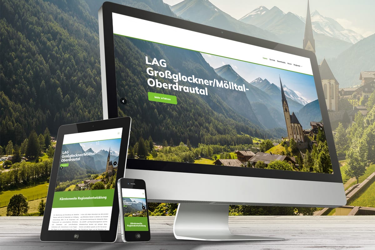 Unsere Aufgabe war es, diese einzigartige Zusammenarbeit innerhalb der Region Kärnten auf einer gut übersichtlichen und verständlichen Webseite zusammenzufügen. Jedes LAG sollte eine eigene Unterseite erhalten. Hierfür haben wir das alte Webdesign komplett überarbeitet und so den einzelnen Gemeinden ein neues, digitales Zuhause gegeben. Passend zur einzigartigen Natur in Kärnten, präsentiert sich die neue Webseite in einem sanften grün.