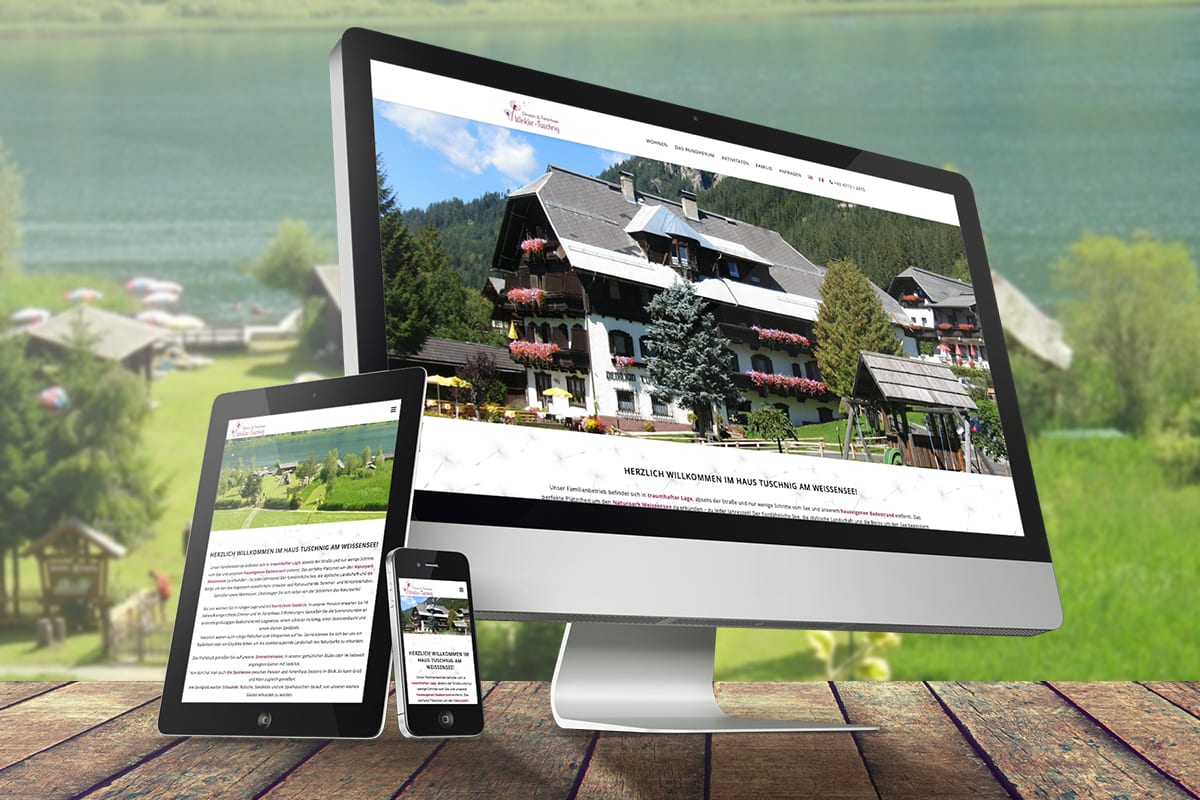 Familie Winkler sorgt mit viel Leidenschaft und Spaß dafür, dass dein Urlaub zu einem sorgenfreien Erlebnis wird. Der Familienbetrieb Pension & Ferienhaus Winkler-Tuschnig ist eingebettet zwischen einer wunderschönen Bergkulisse und dem Türkis schimmernden Weissensee, weit abseits von Hektik und Lärm. Familie Winkler ist mit dem Wunsch an uns getreten, ein Logo und eine Webseite zu gestalten, welche genau diese Idylle und Ruhe ausstrahlen sollen. Die potentiellen Urlauber sollen sich auf Anhieb wohlfühlen.